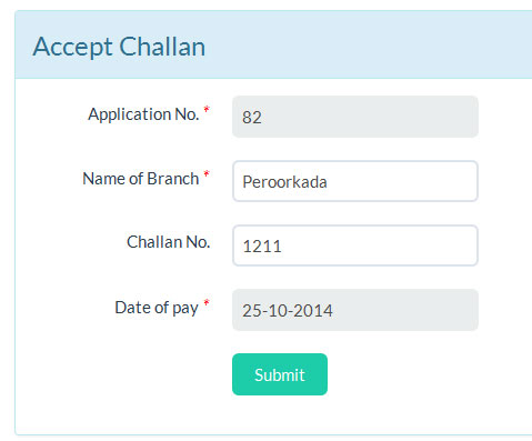 Enter the challan details and click "Submit" button.