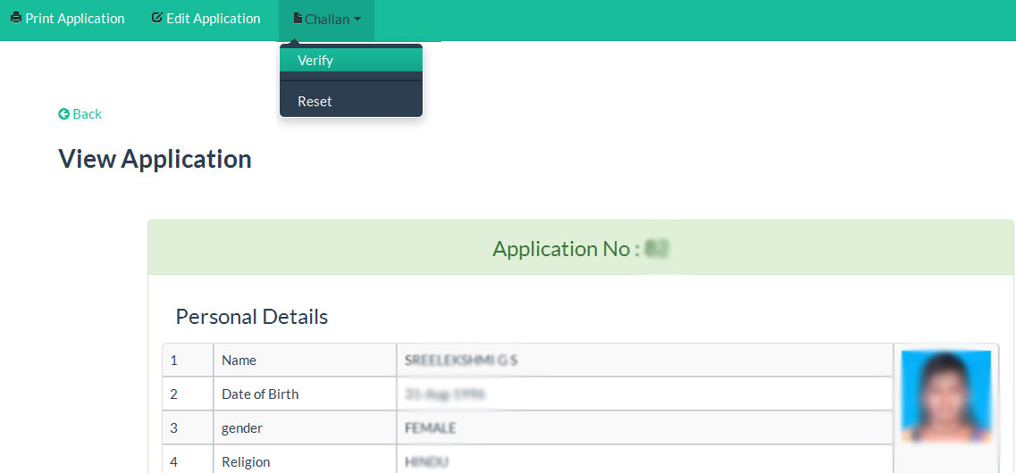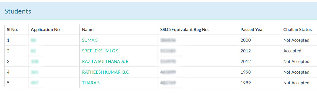 To view particular student's application, click on the name/appno of the particular student.