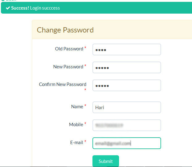 Change Password to your own and enter the user details.