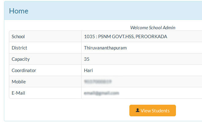 School Admin Home page.